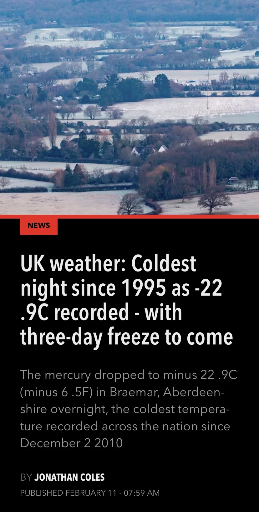 It's what happens when global warming switches off the gulf stream according to Harrison Ford in some shit film 🤔🤣🤣 was only minus 16 here last night, air source heat pump let the living room go down to 18.3 this morning - outrageous 😁